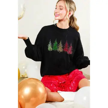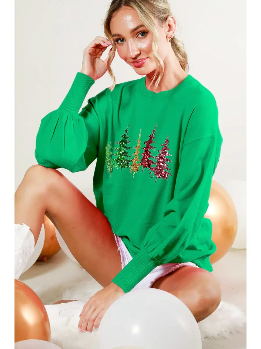 Christmas Tree Sequin Accent Knitted Sweater