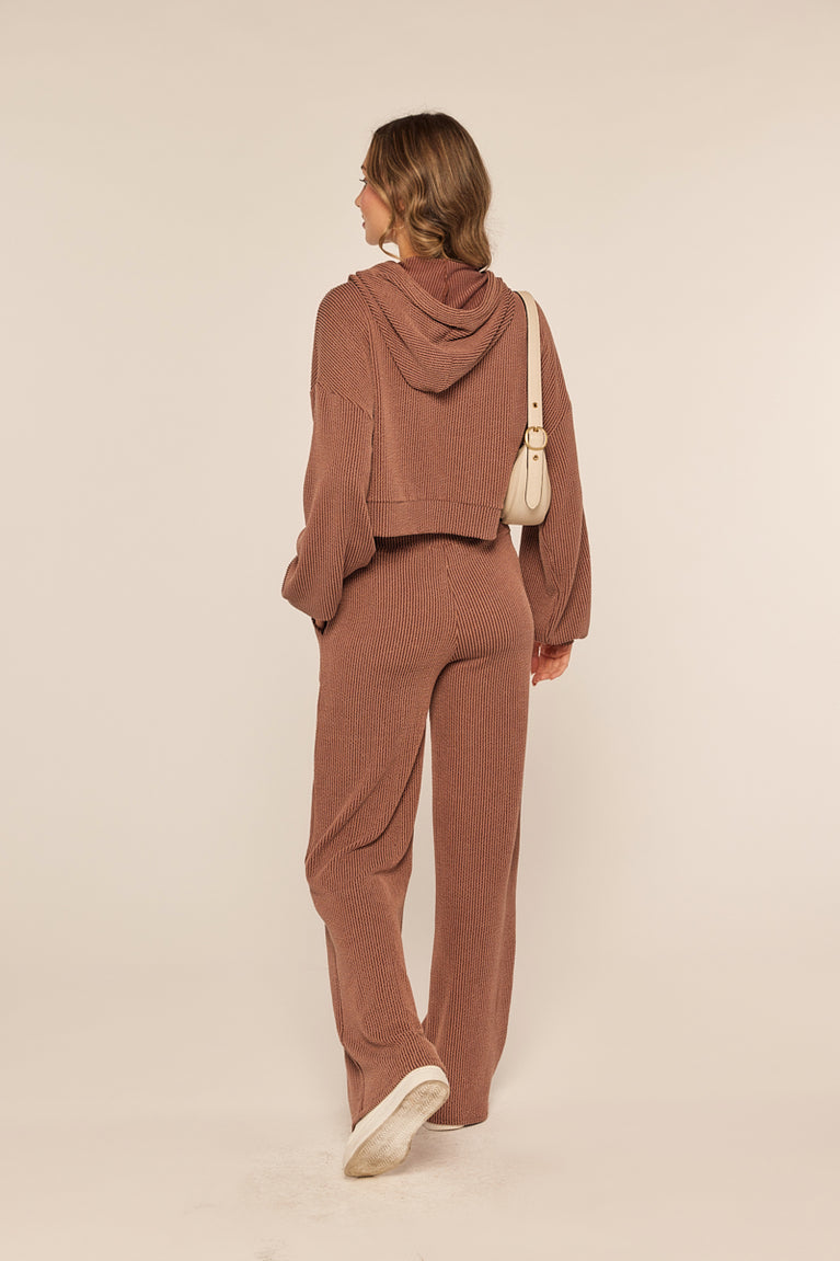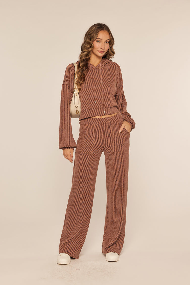 The Kaia Pant brings you cozy vibes from morning to night. Crafted with soft ribbed knit, these high-rise pants flaunt a roomy wide leg and a laid-back fit that’s perfect for chilling or stepping out in style.