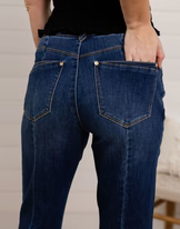 The Mac and Me Barely Boot w/ Front Seams is another standout from our exclusive Mac and Me line — designed with real bodies and real comfort in mind. This pair features a subtle bootcut that balances the leg beautifully, while front seams and a sleek side panel create a lengthening, leg-enhancing effect. Darts at the back add shape and polish, giving you that lifted, held-in feel everyone loves. Crafted from buttery soft denim, these jeans are as comfortable as they are confidence-boosting.