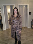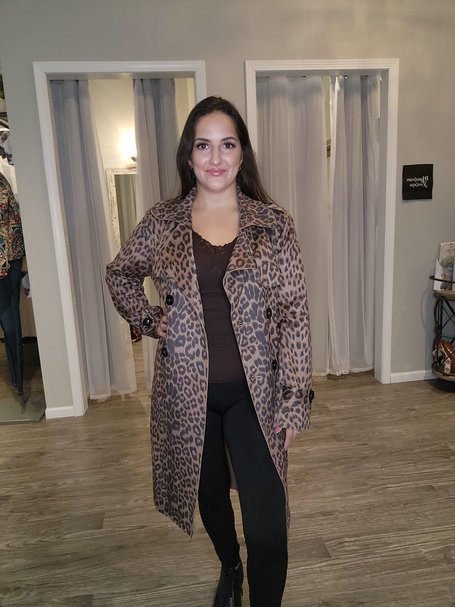 Step out in style with this Faux Suede Animal Print Trench Coat! Soft to the touch and bold in design, it brings a wild twist to your classic trench look. Perfect for adding a playful edge to any outfit, this coat pairs comfort with fierce fashion flair. Ready to turn heads wherever you go!