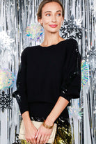 • Ribbed Crew neckline - Contrast embroidered sequin detail - Dolman long-sleeve ribbed hem - Pullover style - soft touch - Our timeless sweaters and accessories represent the best in comfort and style.