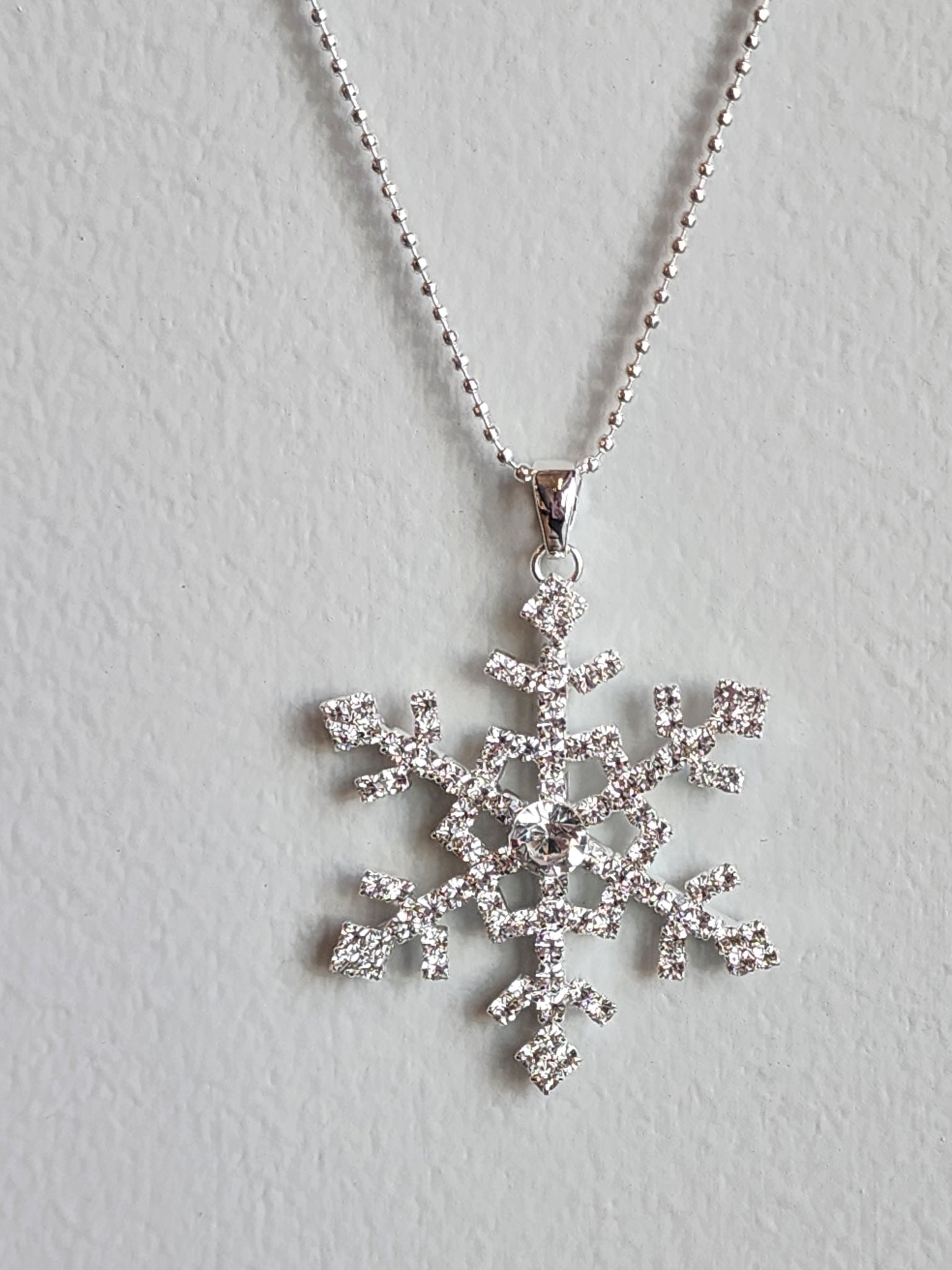Silver Crystal Snowflake Set with Ball Chain