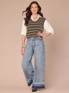 Below Elbow Blouson Sleeve Collar Neck Striped Twofer Sweater Vest