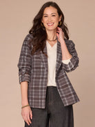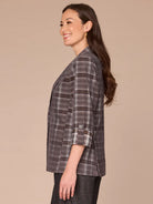 Long Roll Tab Sleeve Princess Seam Pockets Single Button Plaid Blazer
