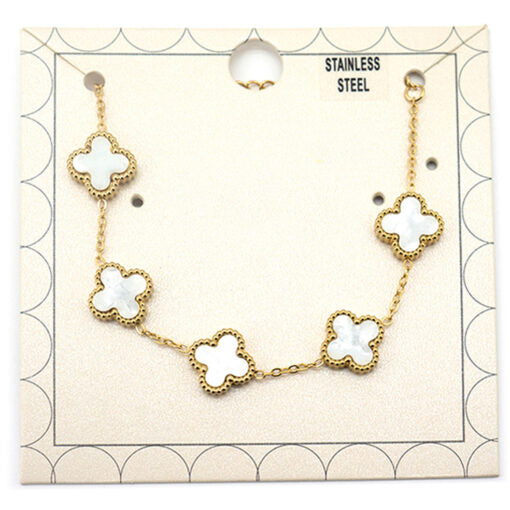 π Stack your wrist with charm and shimmer! This Mother of Pearl & Gold Clover Bracelet combines iridescent mother-of-pearl with luxe gold accents on a reliable stainless-steel band. Whether you're chasing good vibes or just love a little sparkle, this playful piece adds personality to any outfit. Durable enough for daily wear, magical enough to make you smile. β¨π