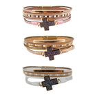 MULTI LAYER DRUZY CROSS MAGNETIC BRACELET. PINK, NATURAL, SILVER