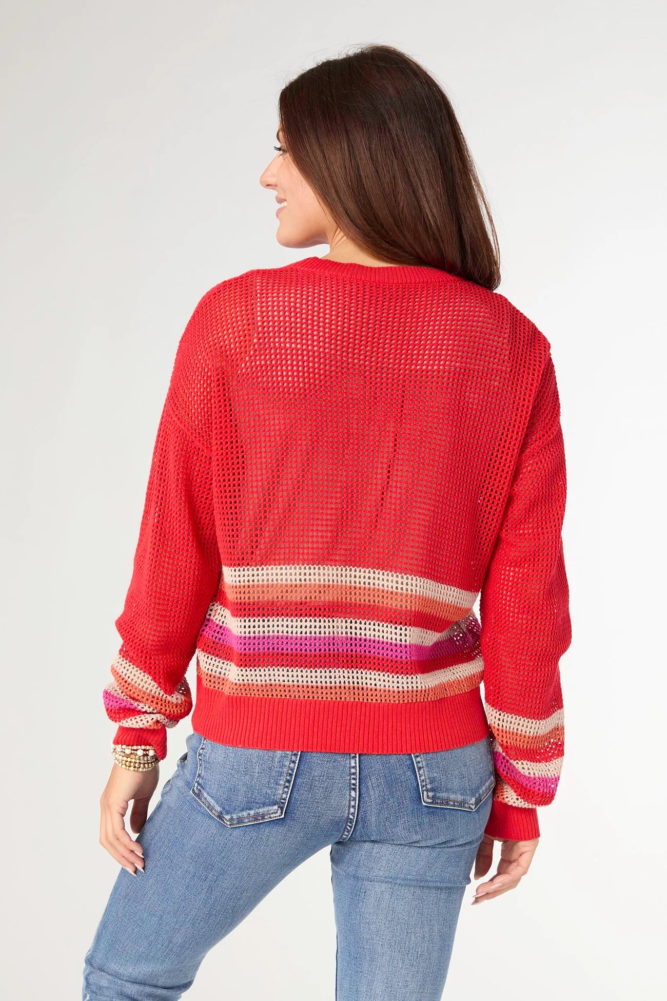 Coco + Carmen Silene Open-Stitch Sweater with Bottom Stripe