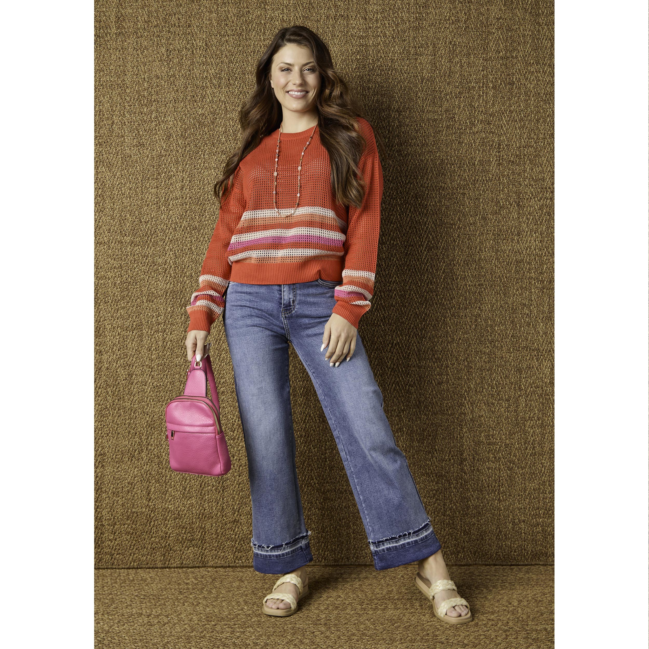 Add a touch of flair to your outfit with our Silene Open-Stitch Sweater with Bottom Stripe! Whether you're running errands or meeting friends for brunch, this sweater is a must-have for any fashion-forward individual. The open-stitch construction allows for airflow, while the bottom stripe adds a unique touch. Stay on-trend and comfortable all day long!