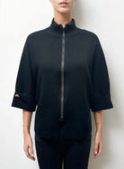 This Elbow Sleeve Mock Neck Cardigan with turn-back cuffs combines style and comfort, offering a sleek fit and versatile layering for any occasion.