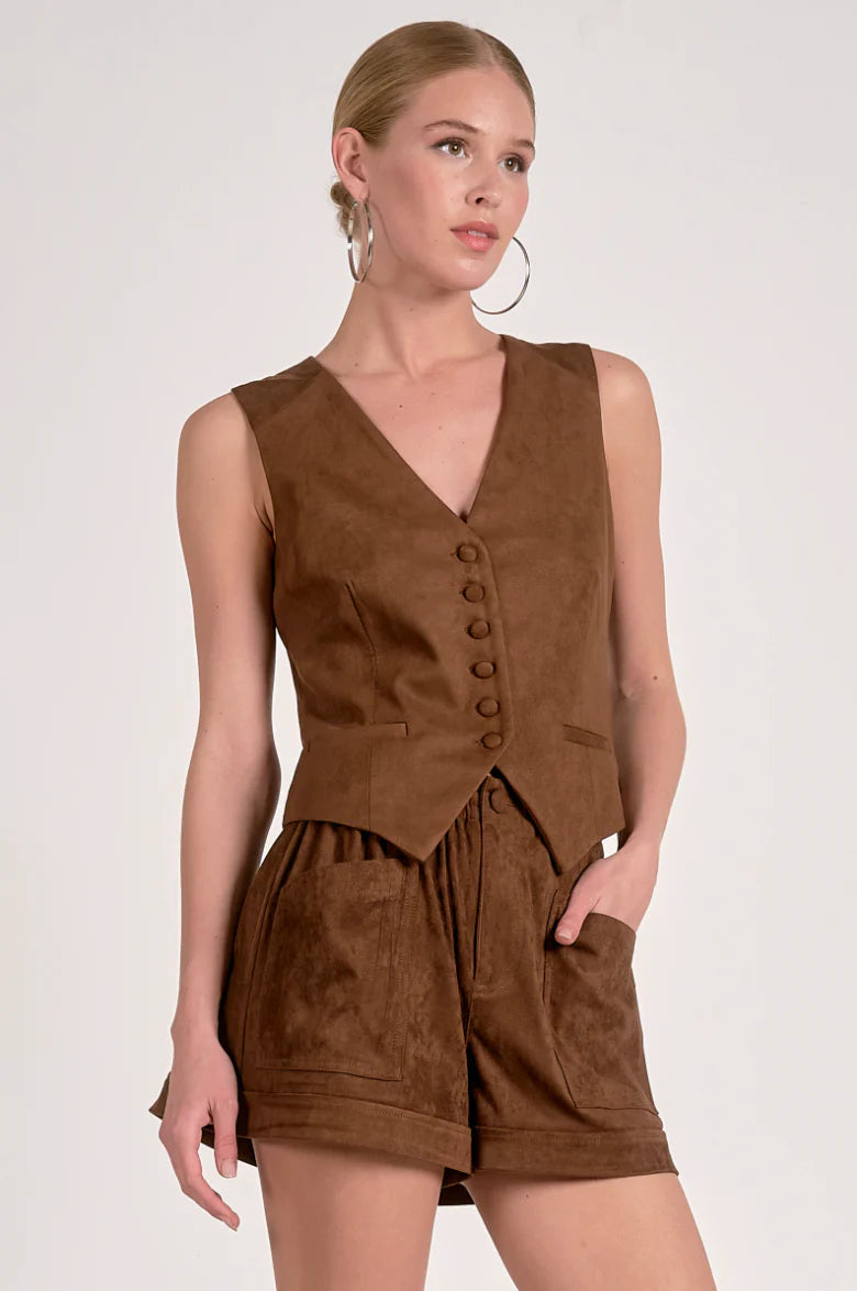 Add instant style with this soft, versatile Faux Suede Vest. Perfect for layering, it effortlessly enhances any outfit with a touch of chic sophistication.