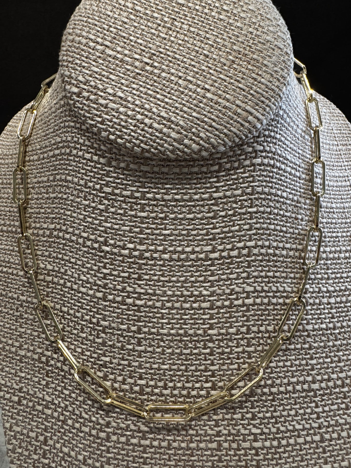 Add a touch of elegance with this Gold 17" Small Paperclip Chain, perfect for layering or wearing solo to enhance any outfit.