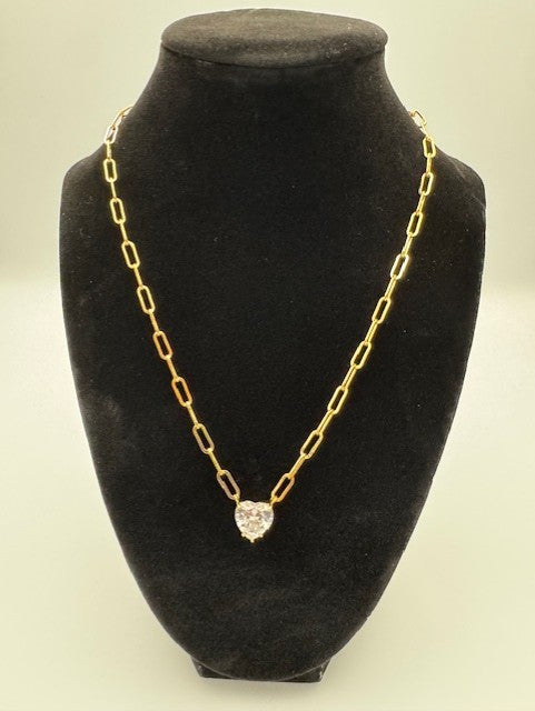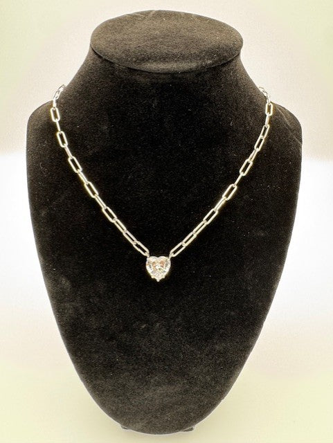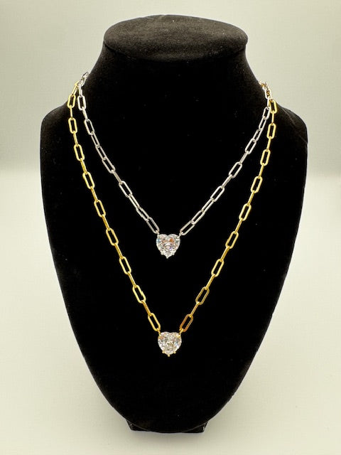 Paperclip Chain Necklace with a Heart Stud Pendent - No Whining Designing Inc.