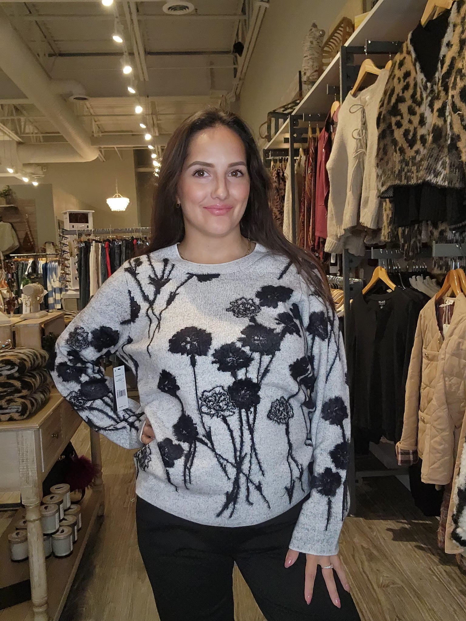 Make a fashion statement with this bold floral sweater! This sweater is both elegant and comfortable, perfect for a night out on the town or a cozy night in! Dress it up with your favorite denim or trousers.
