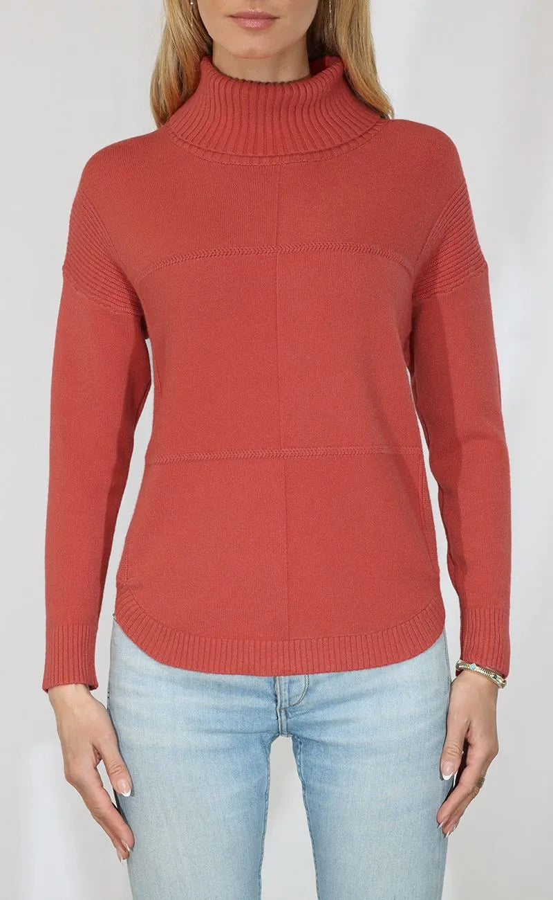 Stay stylish and cozy in this Long Sleeve Turtleneck with stitch detail and a flattering curved bottom, perfect for any season.