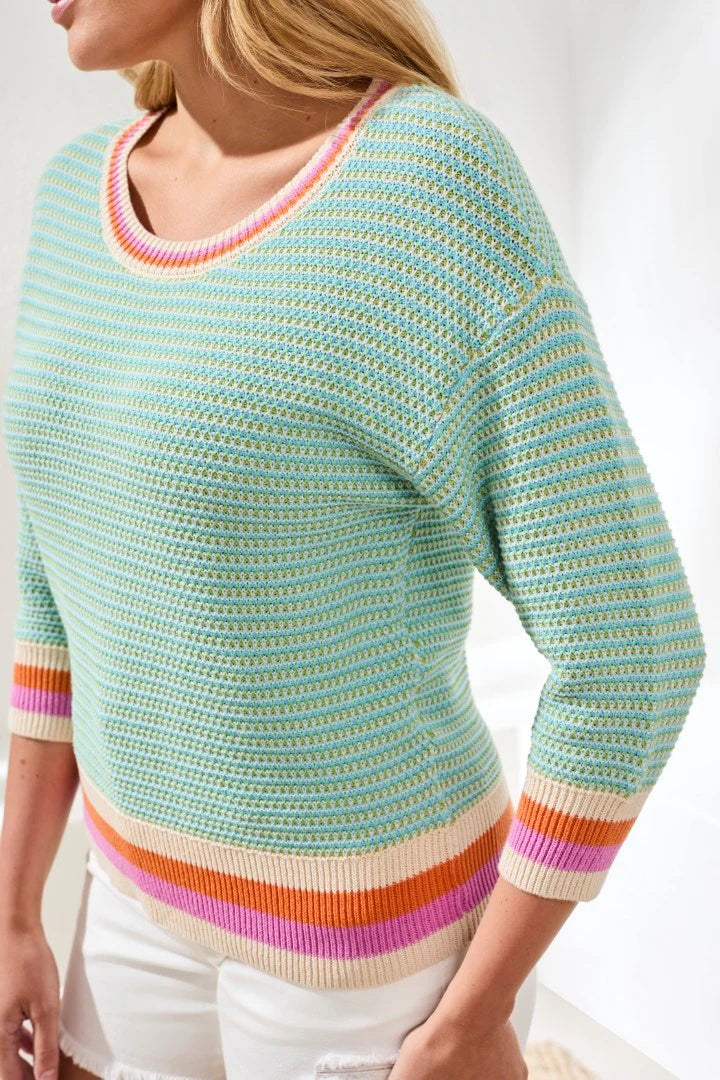 Scoop Neck Cotton Stripe Sweater - MB TRIBAL