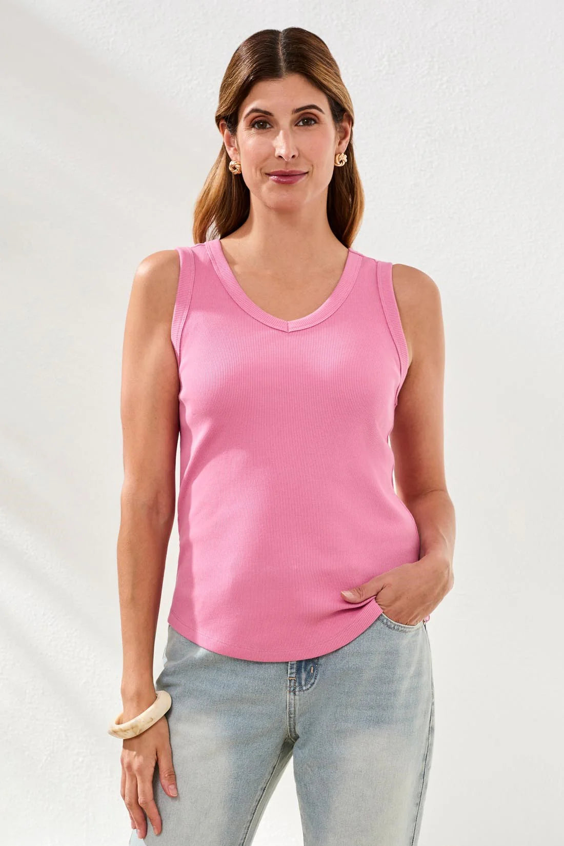 Discover the ultimate in versatility with this wear-two-ways tank top, featuring a reversible boatneck and scoop neck design. The soft stretch knit provides easy movement and lasting comfort, making it an essential layering piece for any modern, multi-generational wardrobe.
