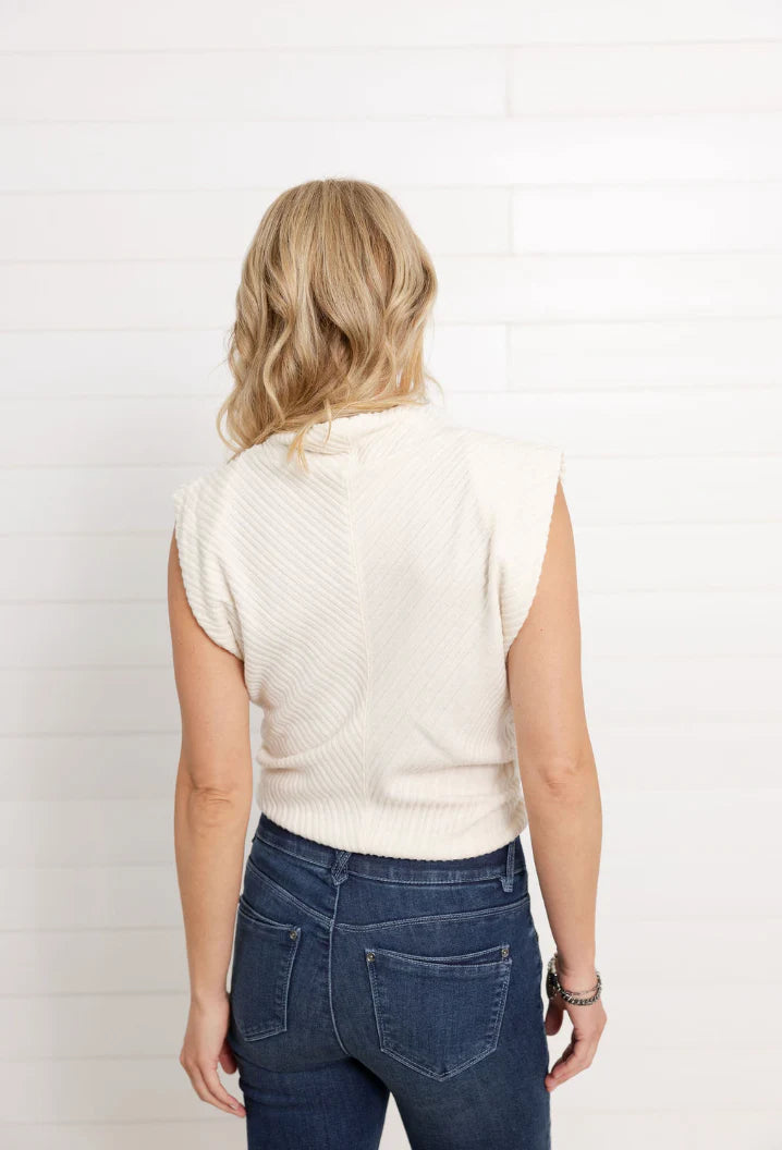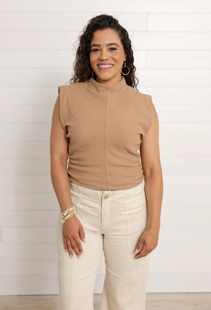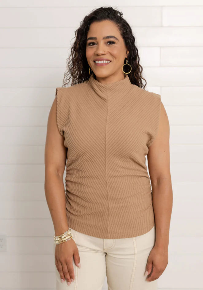 Meet your new layering hero: the Mac and Me Funnel Neck Side Ruched Top. With its cozy funnel neck and body-loving diagonal ribbing, this top is all about comfort that flatters. The ribbing angles inward to create a subtle hourglass effect, and the side ruching adds a little shape without clinging. It’s soft, stretchy, and effortlessly polished—aka perfect for real life.