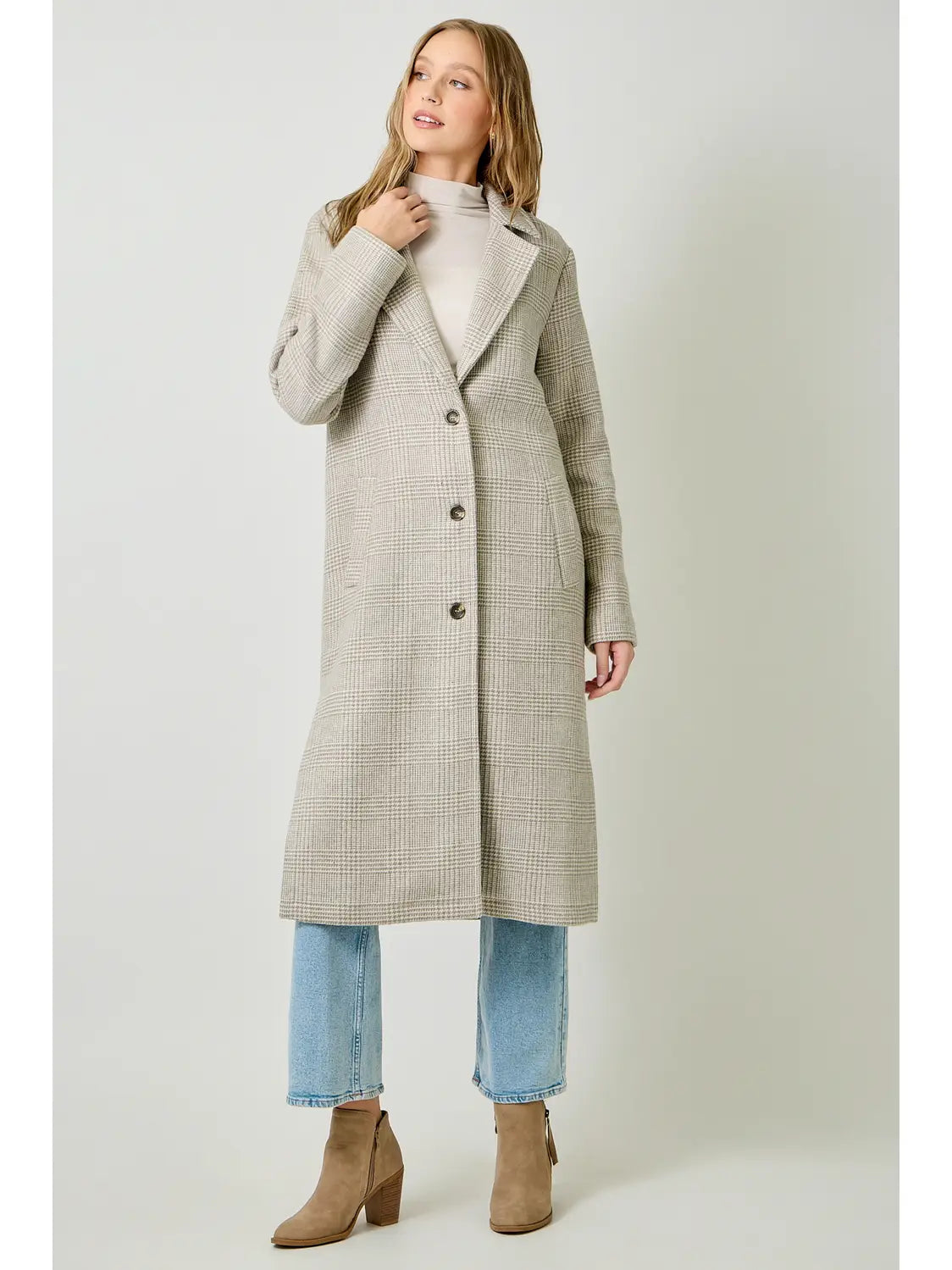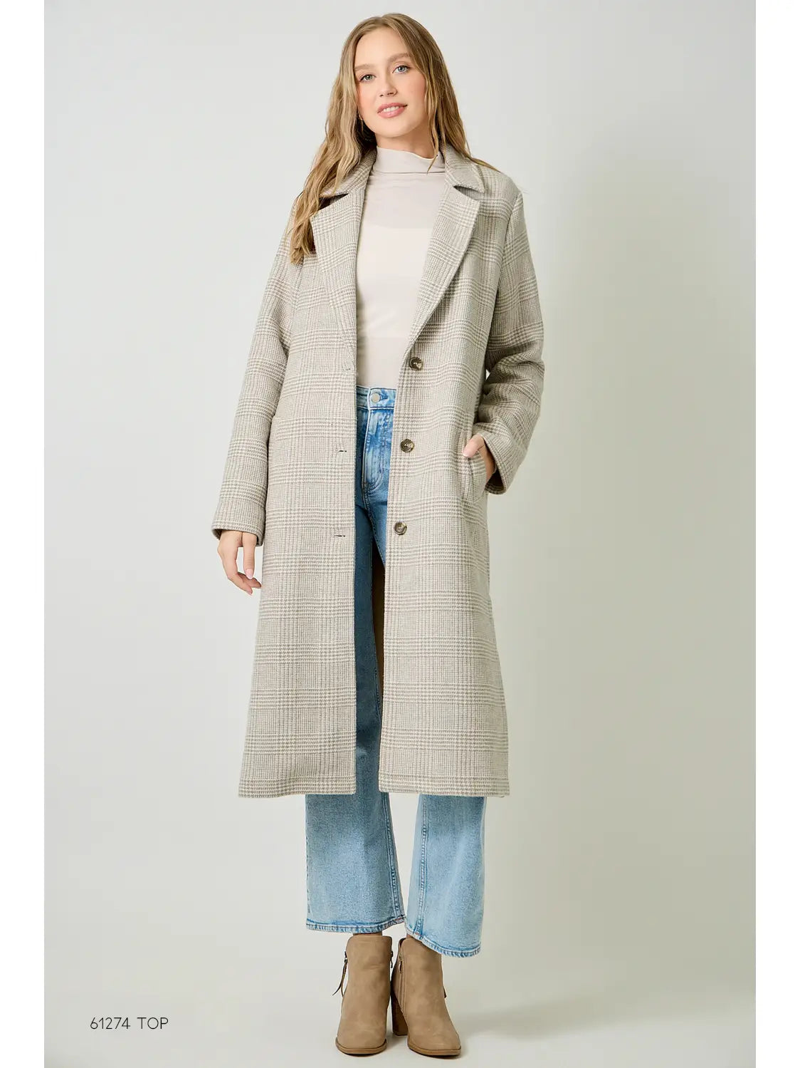 Stay stylish and warm with the Houndstooth Plaid Long Coat. Its classic pattern and sleek design make it a perfect choice for any occasion, adding timeless elegance to your wardrobe.