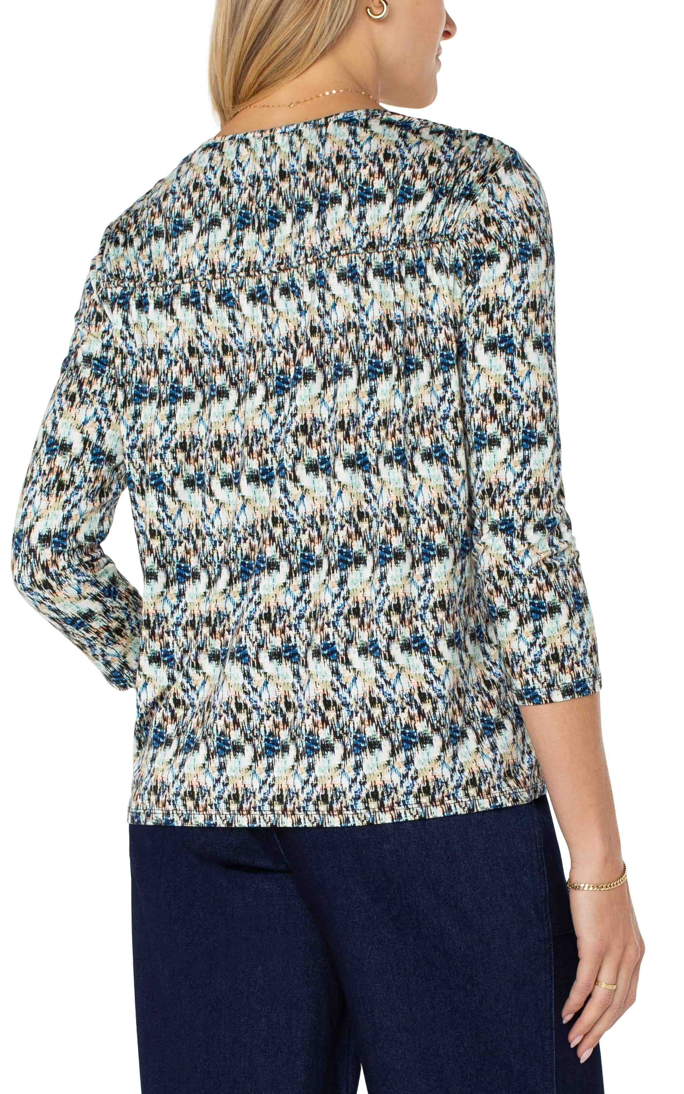 This long sleeve knit top provides both comfort and breathability with a beautiful drape. The shirred detailing and relaxed knit make it versatile for day-to-night wear without sacrificing ease of movement.
