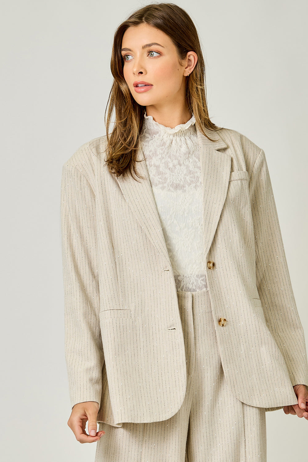 - Sparklet Pinstripe Oversized Blazer