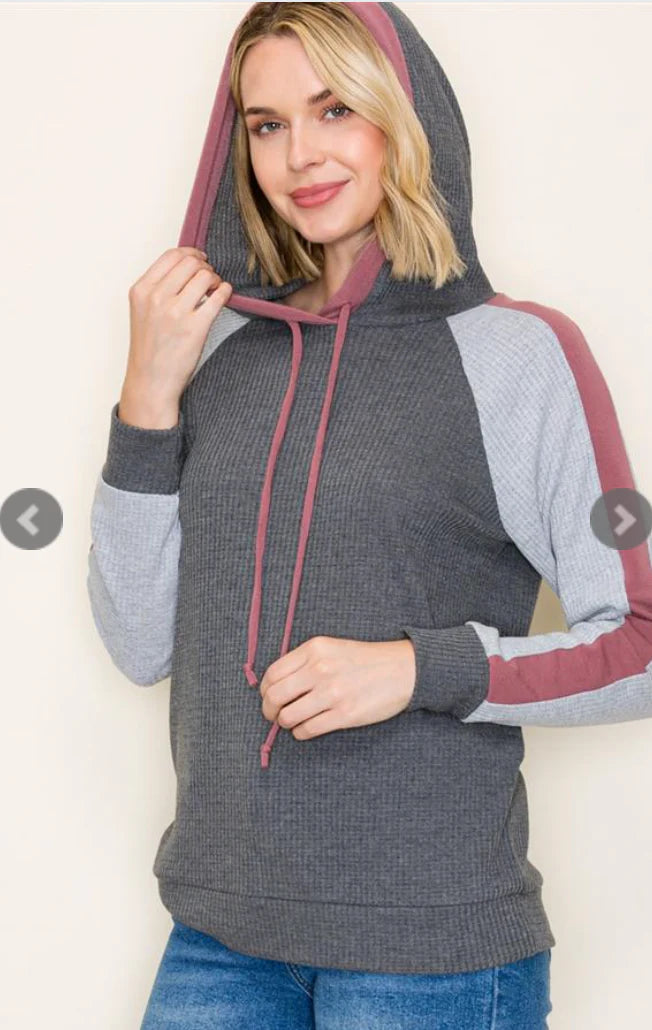 Cozy meets cool in this waffle hoodie, featuring playful color-blocked panels and a fun contrast trim. The drawstring neck lets you adjust your look, while long sleeves keep you snug on chillier days. Perfect for layered comfort with a dash of stylish charm.