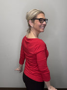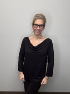 Add a dash of effortless charm to your wardrobe with this 3/4 sleeve draped neck knit. Its soft fabric gently wraps you in comfort, while the elegant, draped neckline adds a flirty twist to your everyday look. Perfect for layering or wearing solo, this playful piece brings cozy sophistication to any outfit.