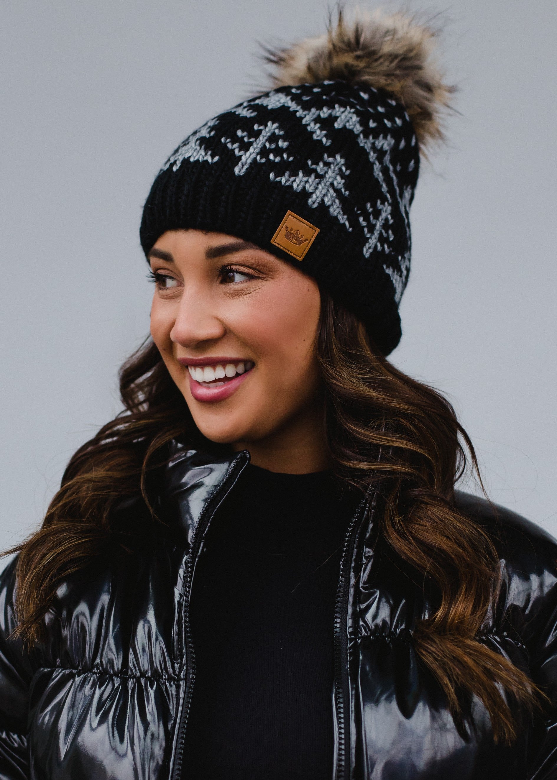 Black w/ Grey Winter Pattern Pom Hat