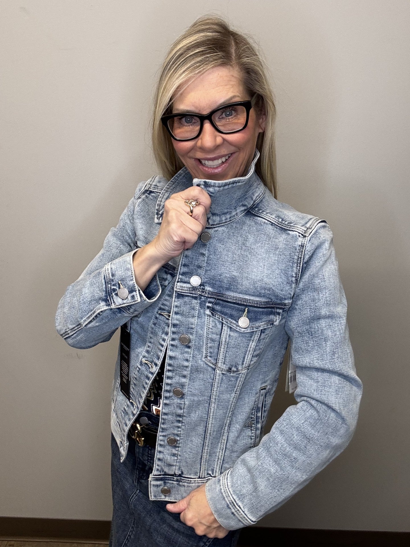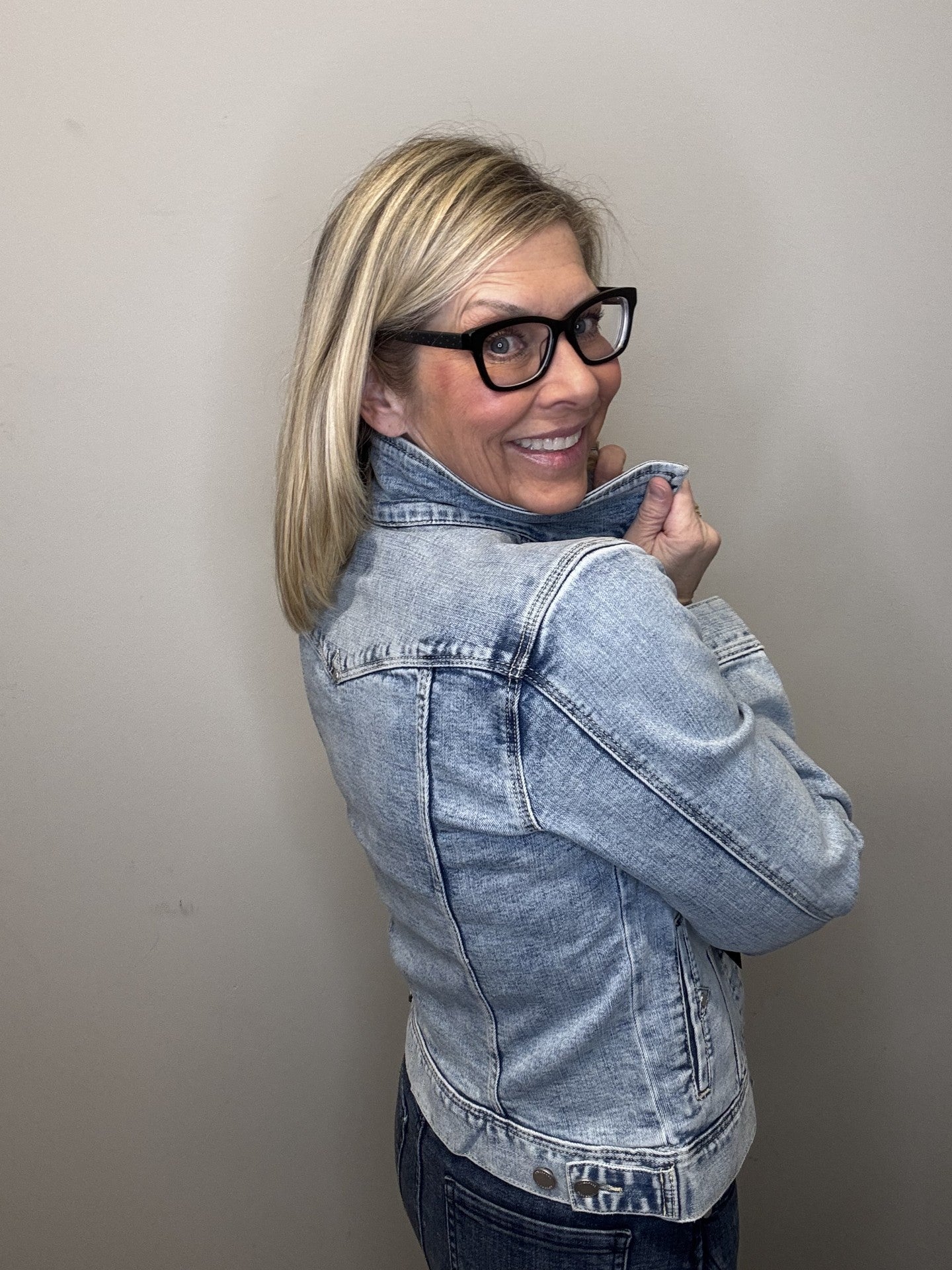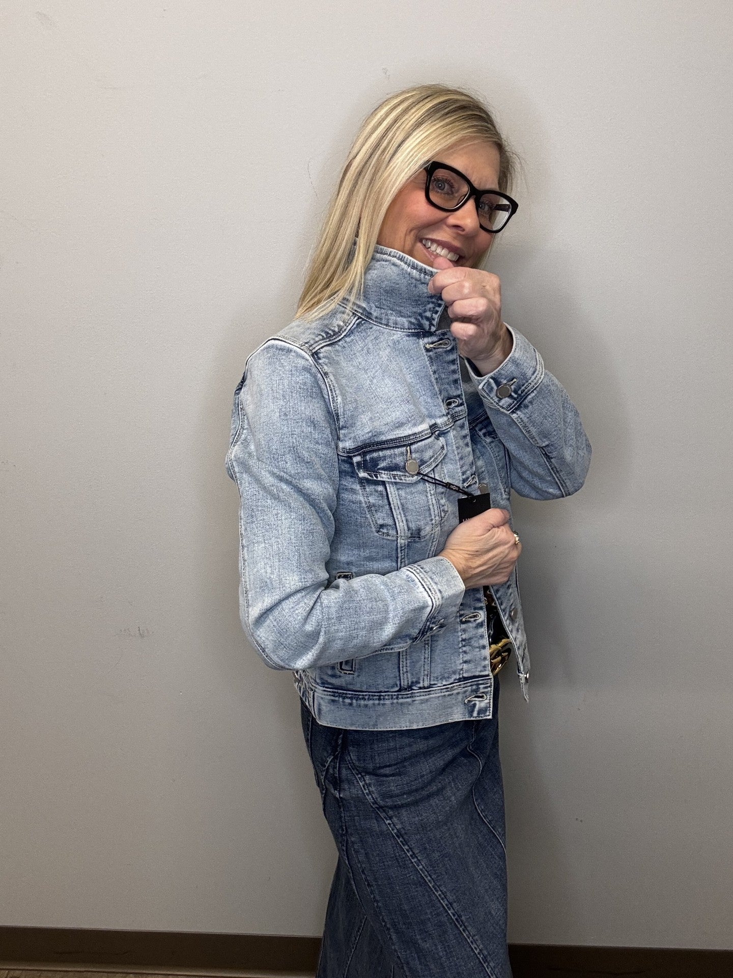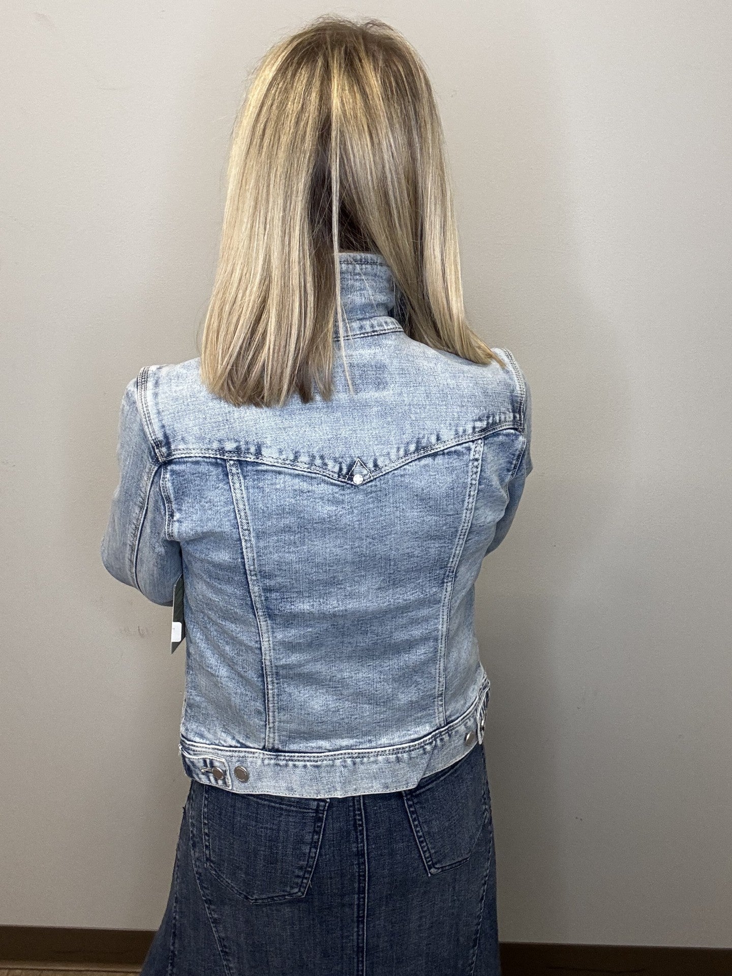 Our classic jean jacket with amazing stretch and recovery. Your go-to layering item that adds the perfect touch to any outfit made with comfortable fabric that won't stretch out!