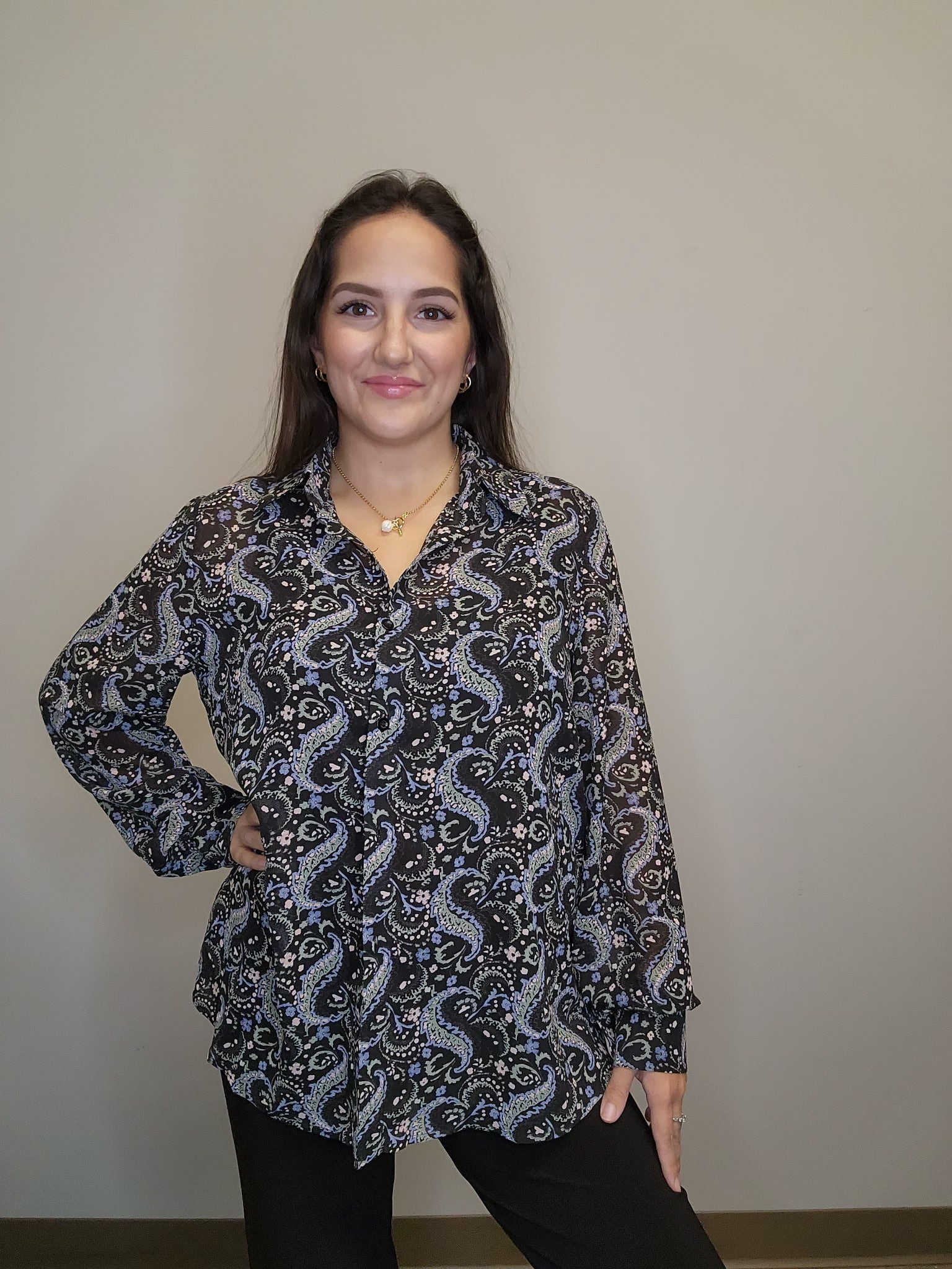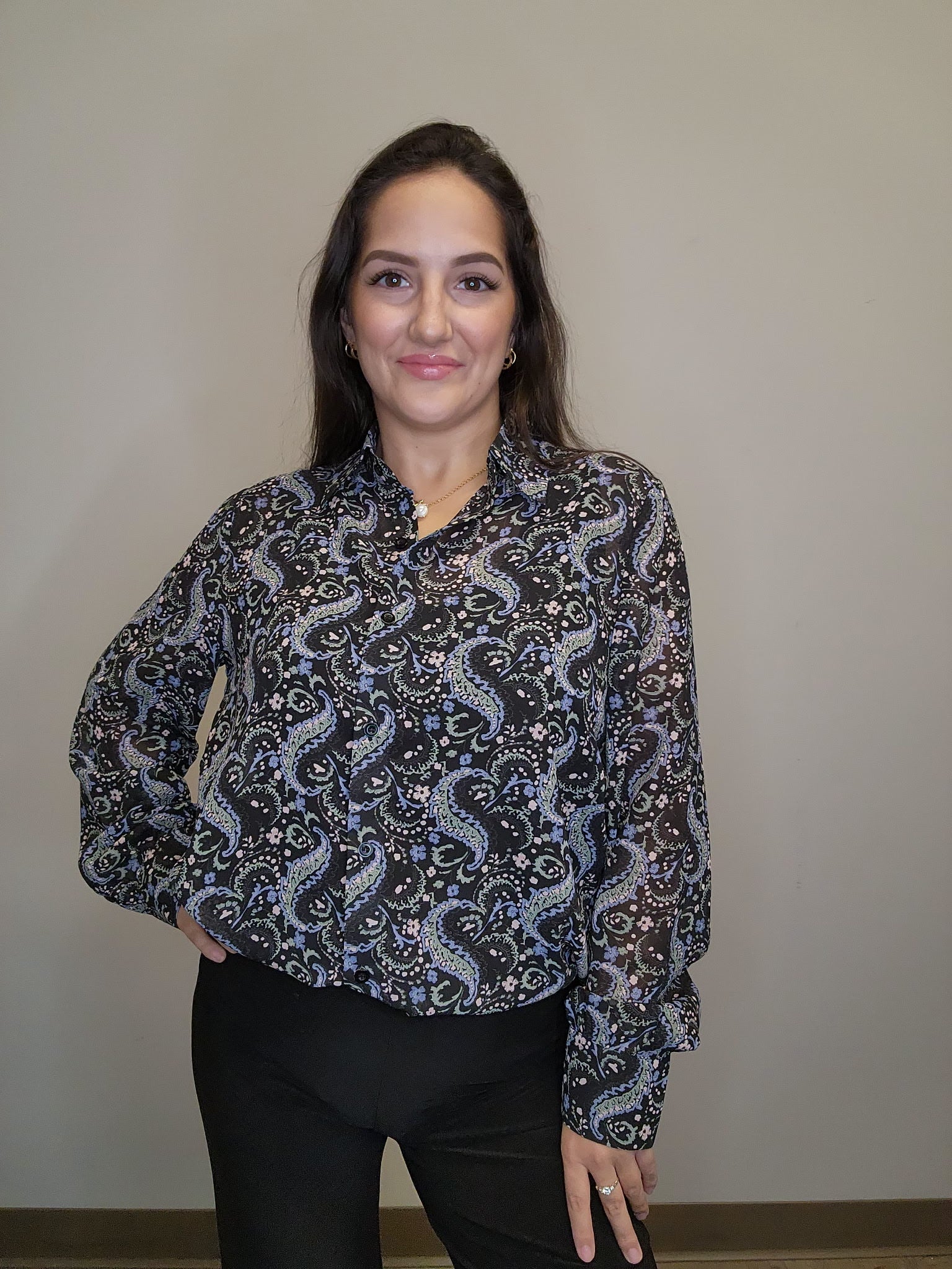 Floral Paisley Collared Button Front Blouse