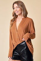 This Hi Lo Deep V Neck Blouse is a versatile piece that can easily transition from day to night. The deep V neckline adds a touch of elegance while the hi lo hemline creates a flattering silhouette. Made with soft and lightweight fabric, this blouse is both comfortable and stylish.