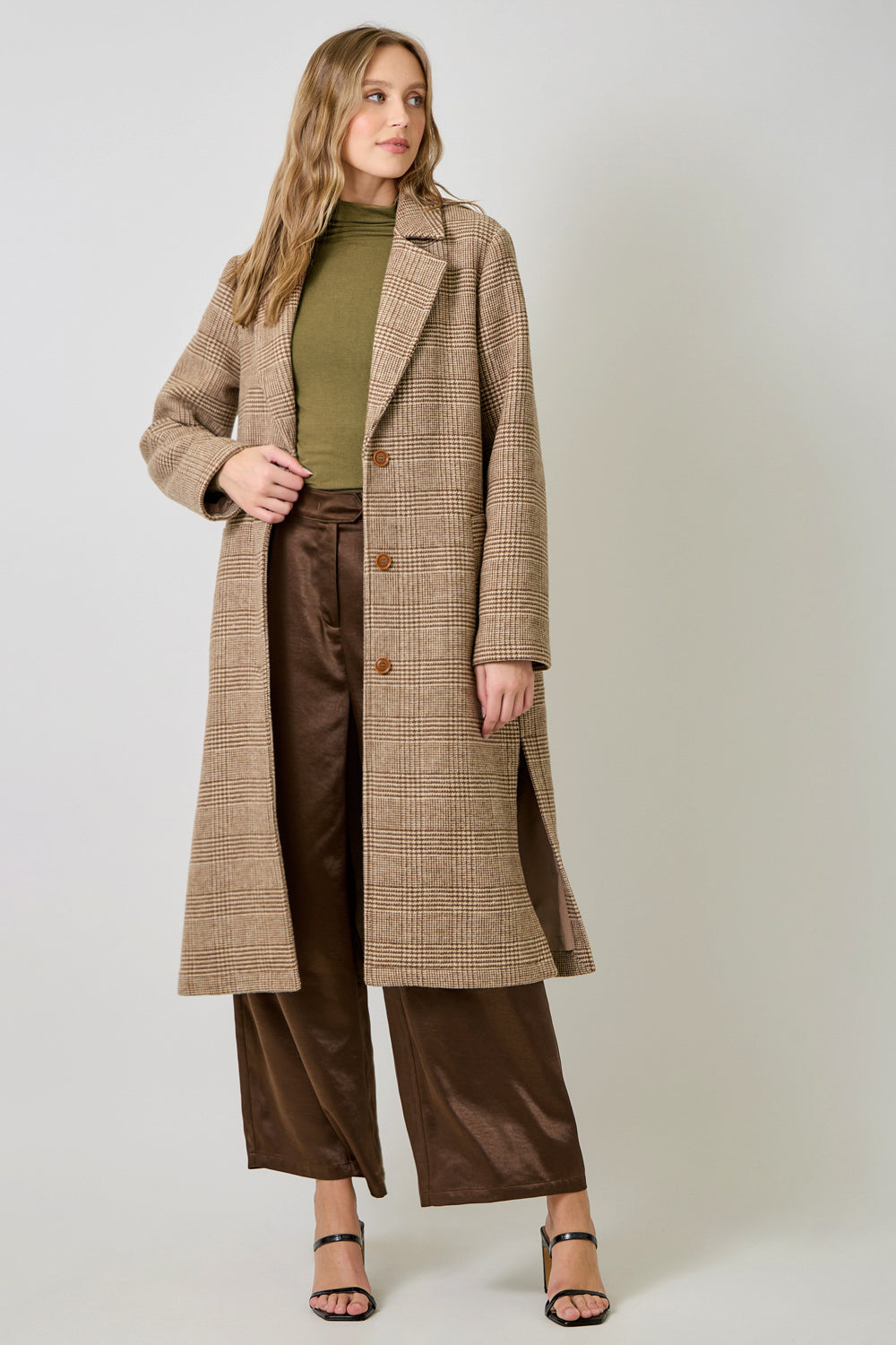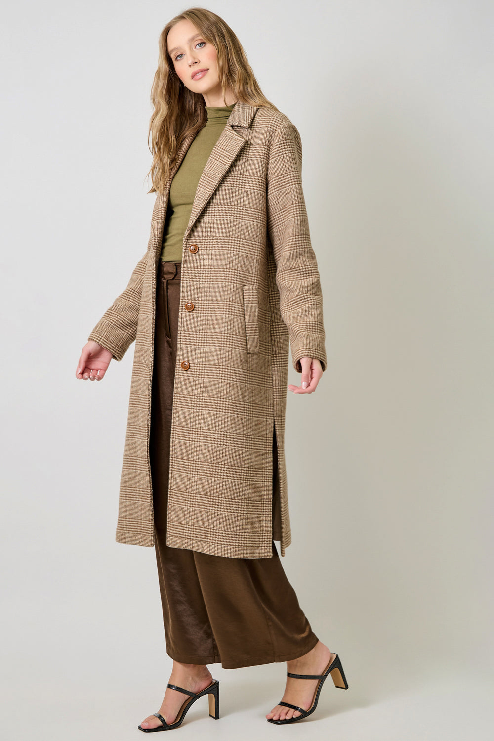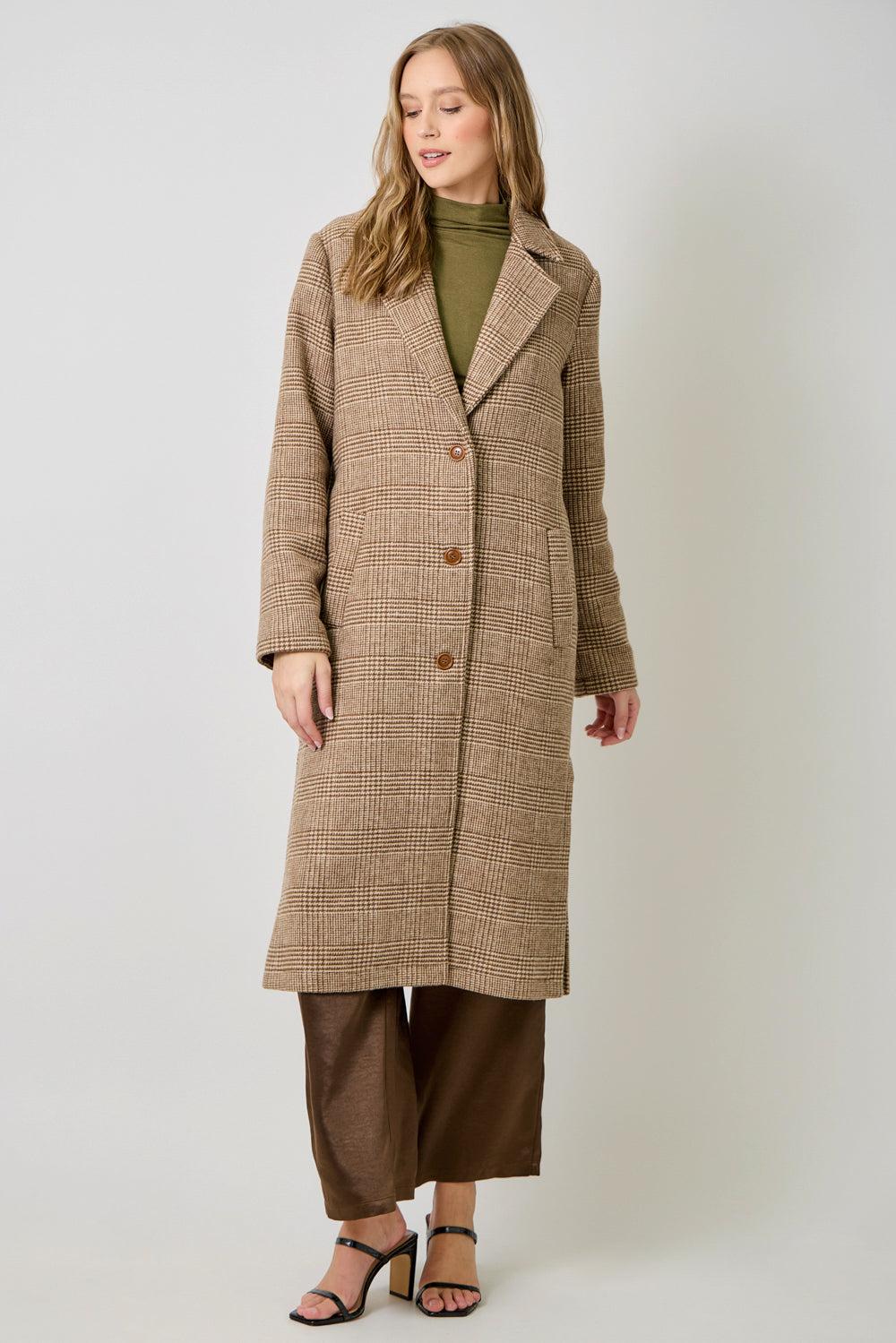 Houndstooth Plaid Long Coa