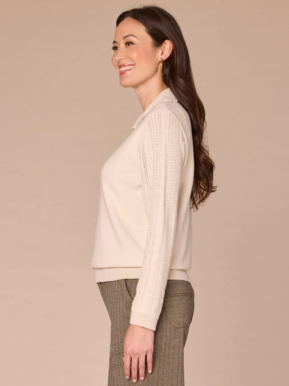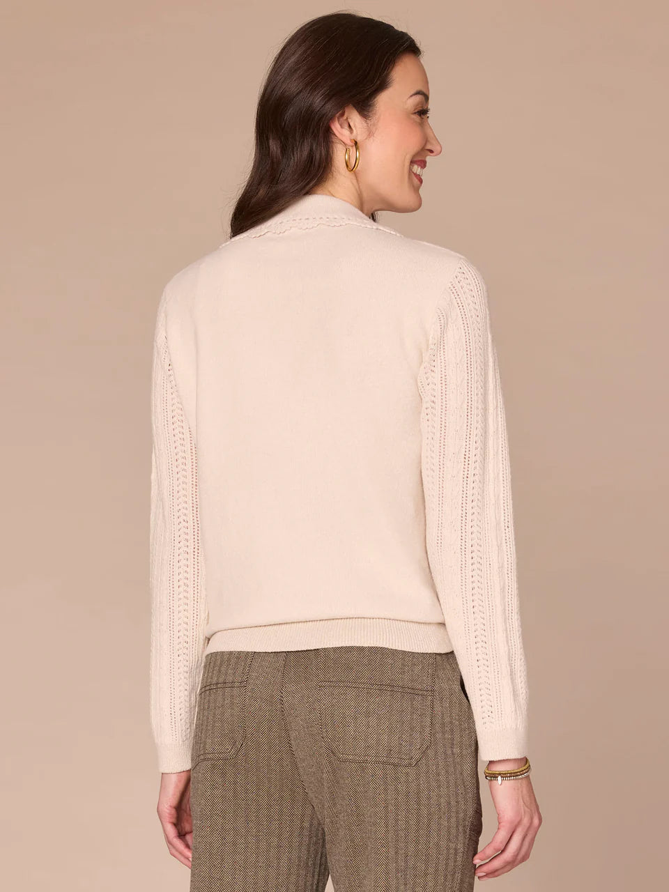 Long Sleeve Collar V-Neck Crochet Scallop Sweater