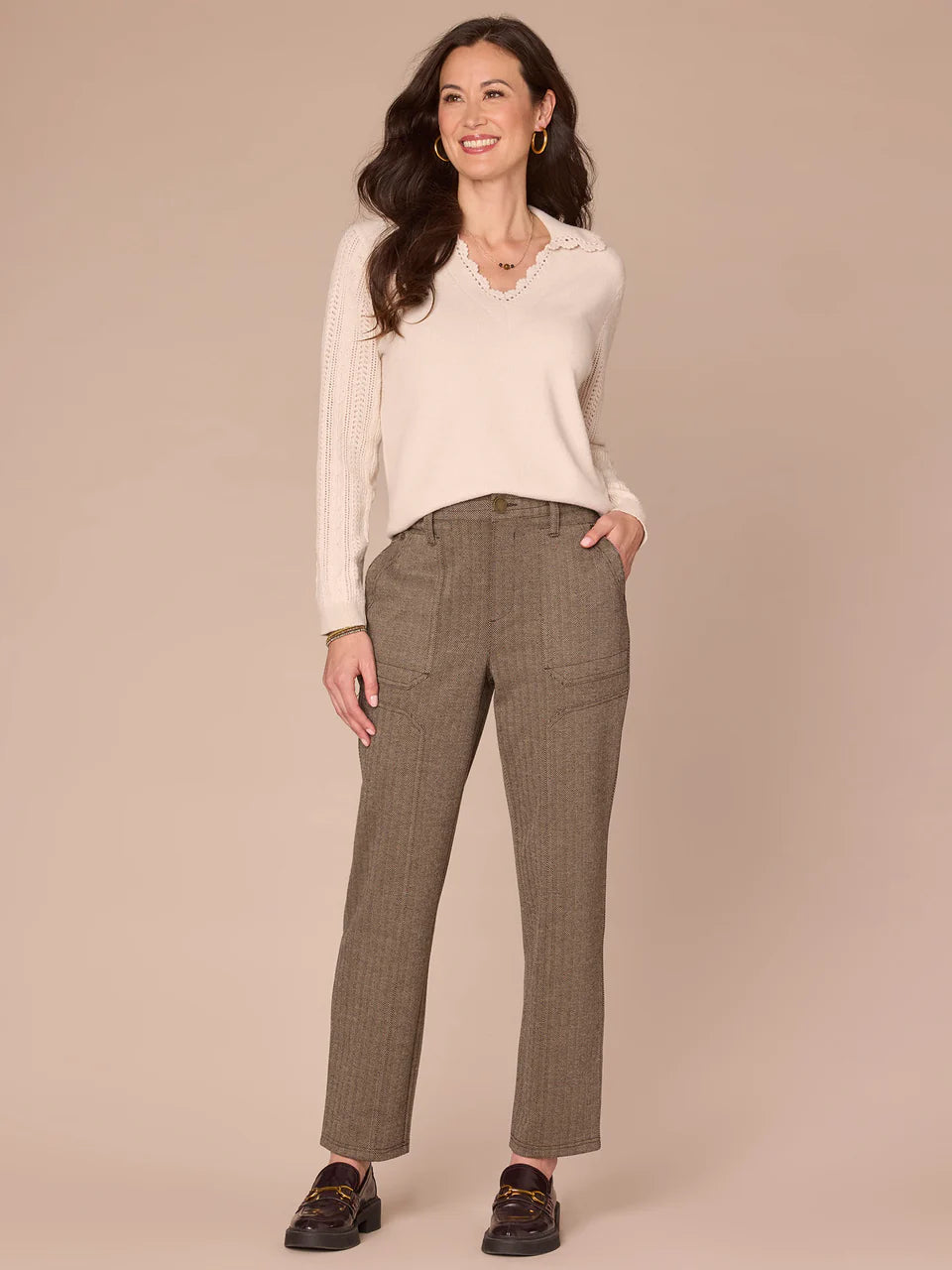 Soft, smart, and designed to flatter, this long sleeve sweater is an effortless outfit topper for every day. It has a Johnny collar V-neck, straight banded hem, and crochet scallop edge detailing.