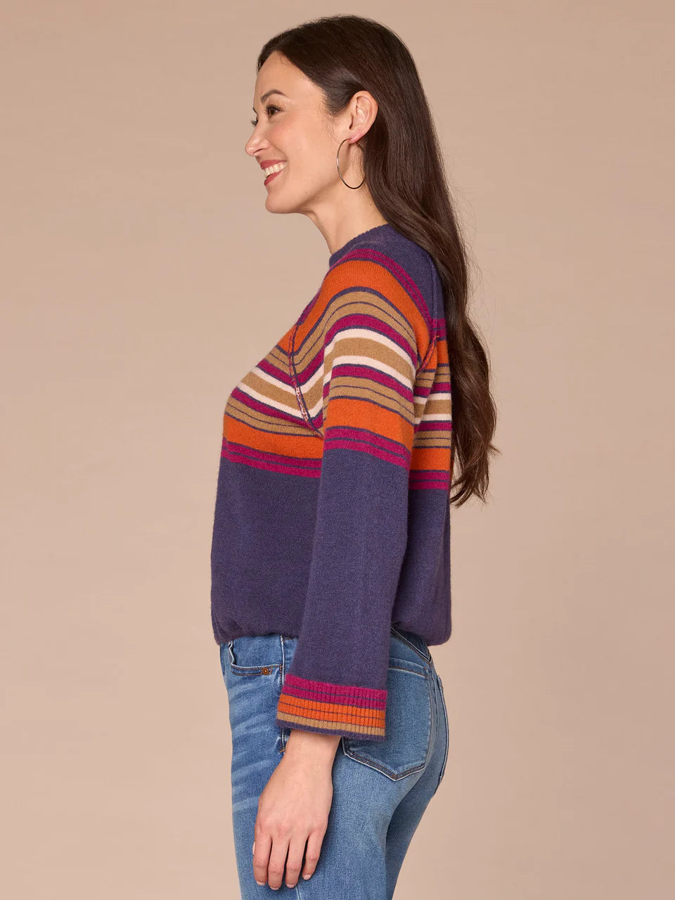 Long Cuffed Sleeve Mock Neck Bubble Hem Placement Stripe Sweater