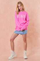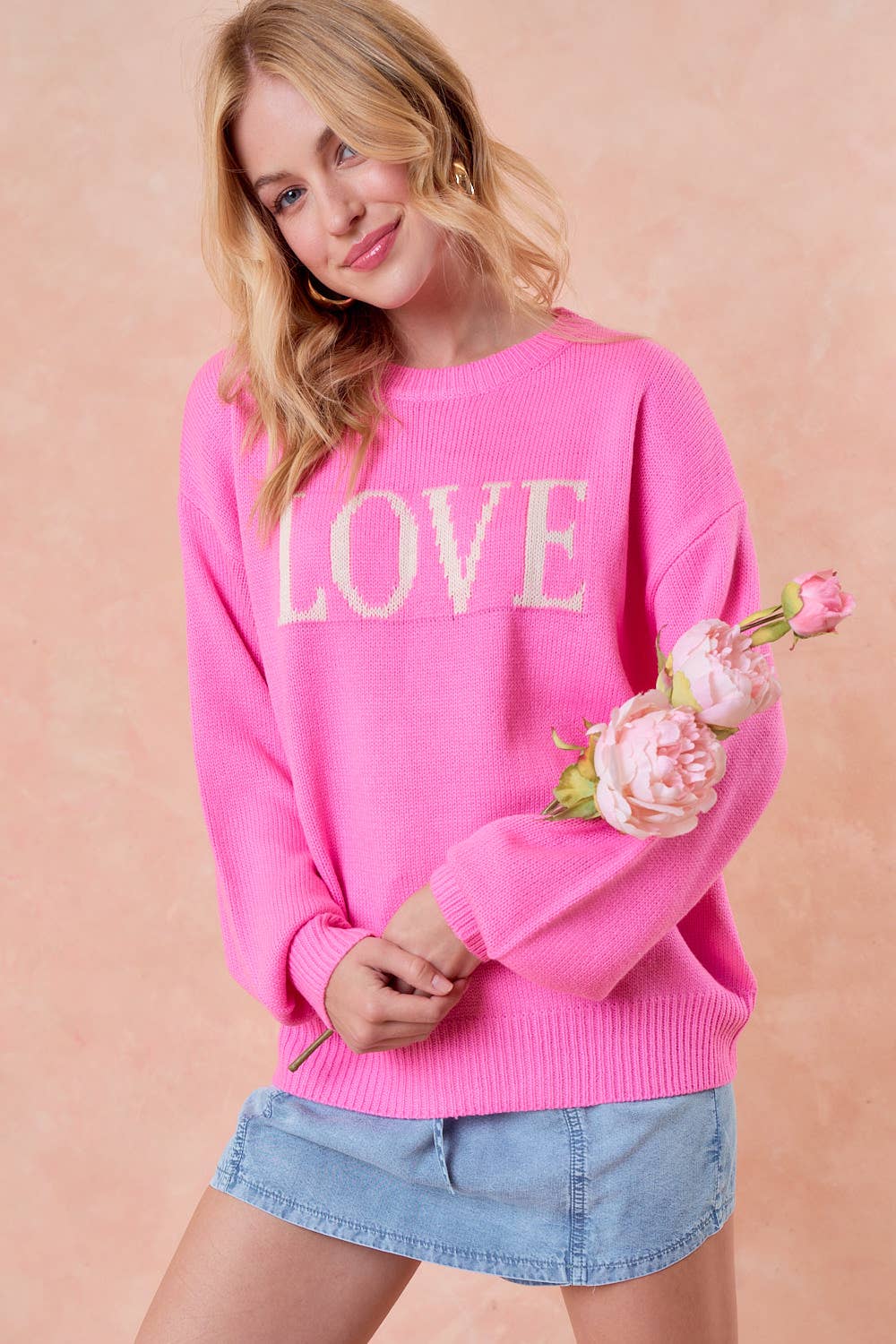 Adorable long sleeve sweater top with LOVE embroidery that brings warmth and charm to your closet. The soft knit fabric and playful design make it perfect for cozy days and casual styling with your favorite bottoms.