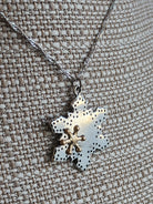 Sparkle through the season with this playful two-tone snowflake necklace. The delicate pendant blends warm and cool metallics for a festive look that works year-round. Perfect for layering or wearing solo.