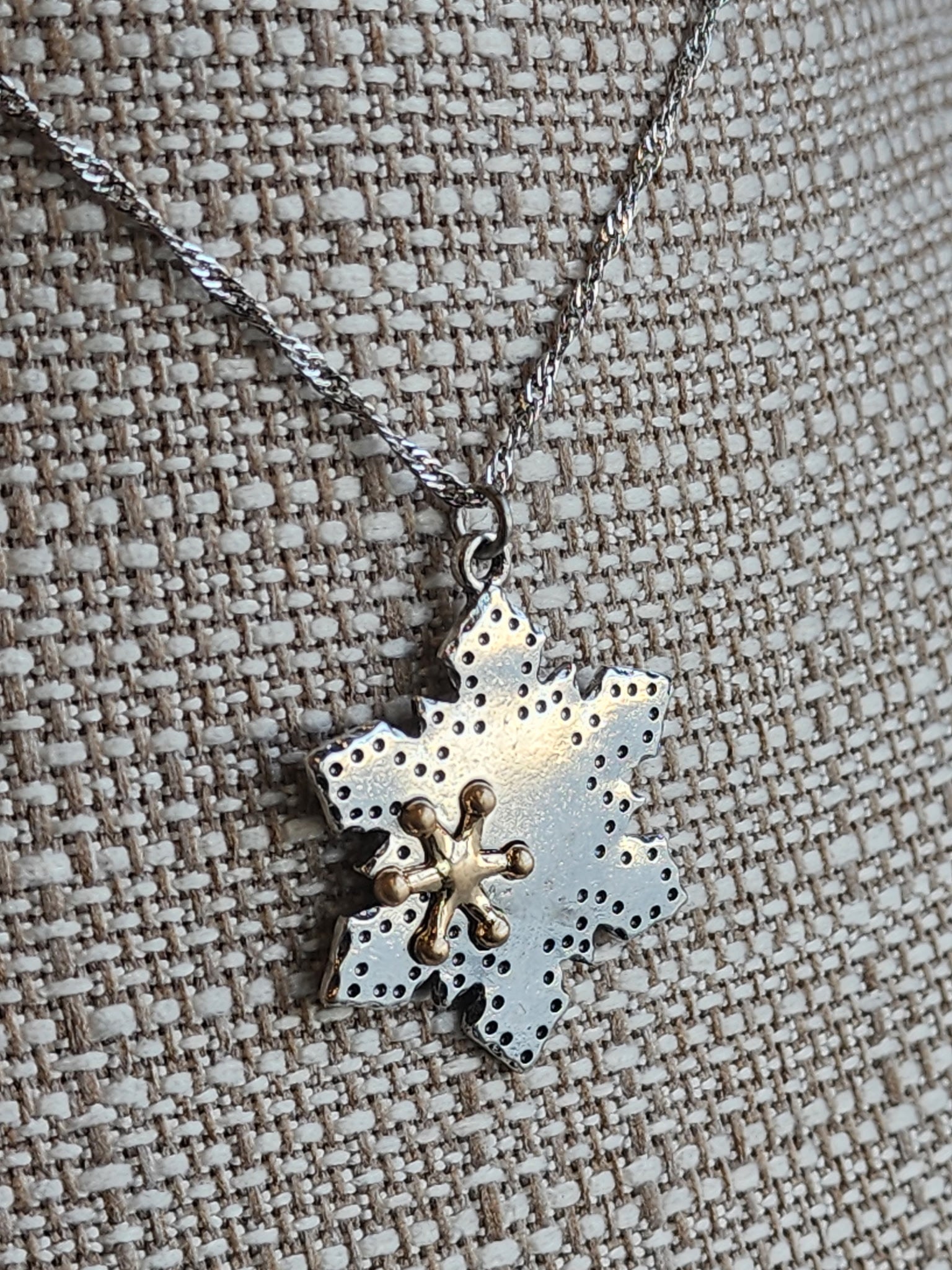 TWO TONE SNOWFLAKE CHRISTMAS NECKLACE