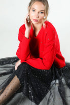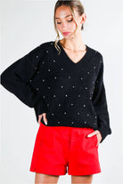 - Ribbed V-neckline - Casual drop shoulder - Long-sleeve ribbed hem - Fashionable Rhinestone trim detail - Argyle pattern detail - Pullover style - soft touch - Fall and winter - Must-have for chilly days and cozy nights. - Holiday, Christmas, Valentine, every day, Office Work, Going out, School.... * Model is 5'8, 32-27-37, wearing SMALL