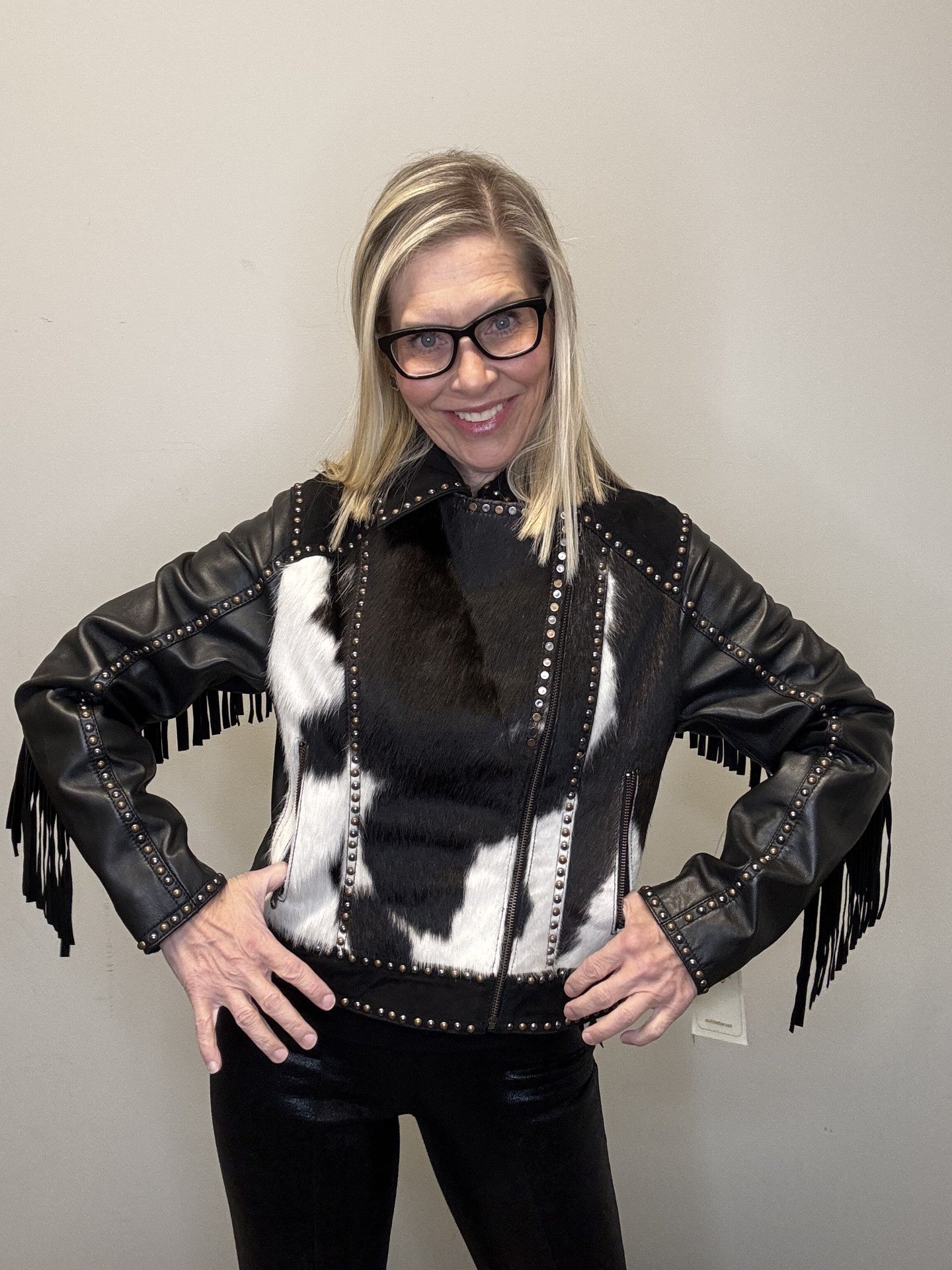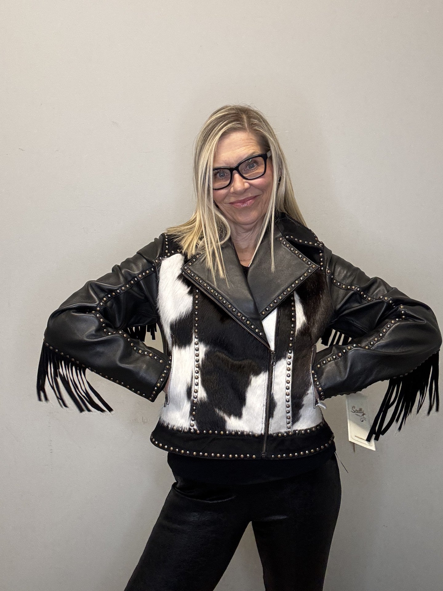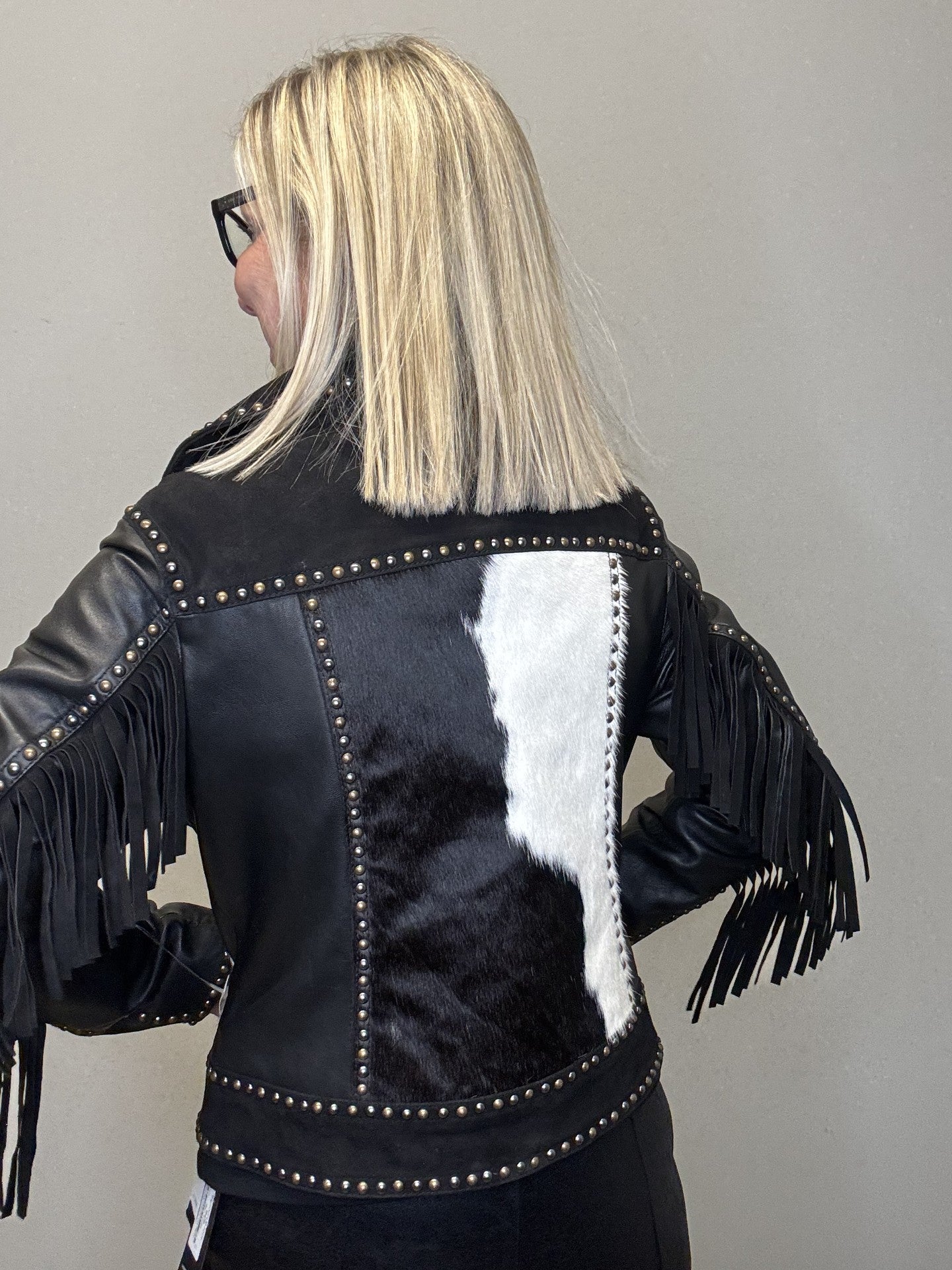 • Western inspired leather with cowhide jacket.