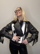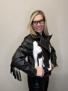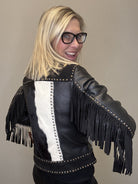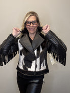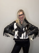 Western Leather Studded Fringed Zip Cowhide Jacket