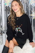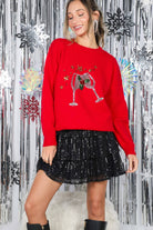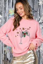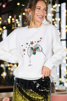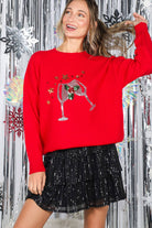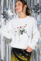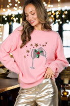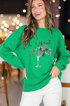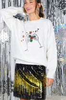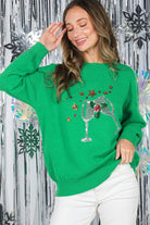 Wine Glass Sequin Accents Christmas Knitted Sweater