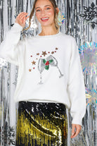 - Ribbed Crew neckline - Casual drop shoulder - Long-sleeved ribbed hem - Sparkling Wine Glass, Holly Berry Clover, Gold Star Sequin embroidered detail - Pullover style - soft touch - Comfortable, loose fit - Playful Christmas Sweater * Christmas, Holiday ITEM * Styled with VP83031, VS81364A * Model is 5'8, 32-27-37, wearing SMALL