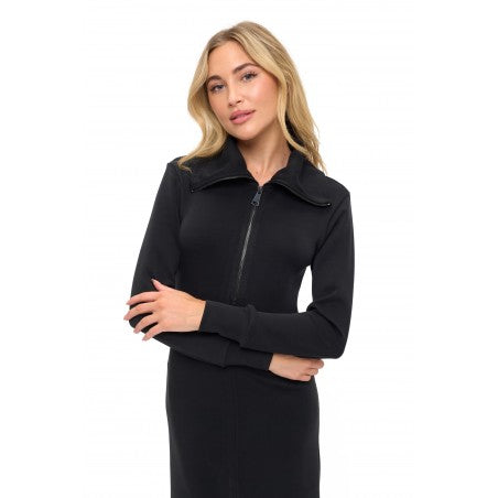 This Zipper Midi Dress in Scuba combines sleek style with comfortable stretch fabric. Its midi length and modern zipper detail create a flattering silhouette perfect for day-to-night wear. Elevate your wardrobe with a dress that’s as versatile as it is chic.